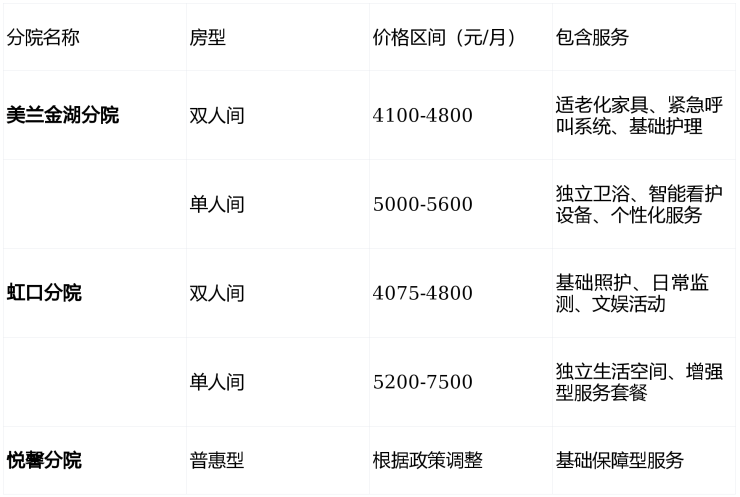 基础费用包含床位、基础护理、膳食、健康监测和文娱活动。特殊护理、个性化服务等根据实际需求另行计费,所有费用明细会在签约前明确列出。