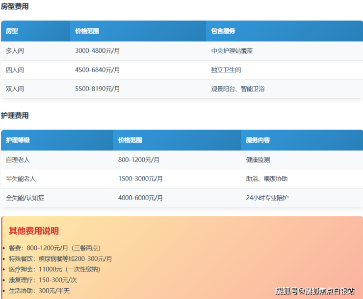 以双人间+自理级护理+基础营养餐为例,最低综合费用约为4800元/月,具体费用根据