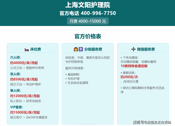 VIP套房:15000元/月起(独立客厅+家属陪护床+24小时专属管家)。