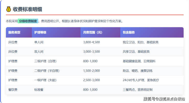 上海金福居敬老院采用“基础服务费+护理费+餐费”的复合收费模式,具体费用根据长者自理能力分级收取: