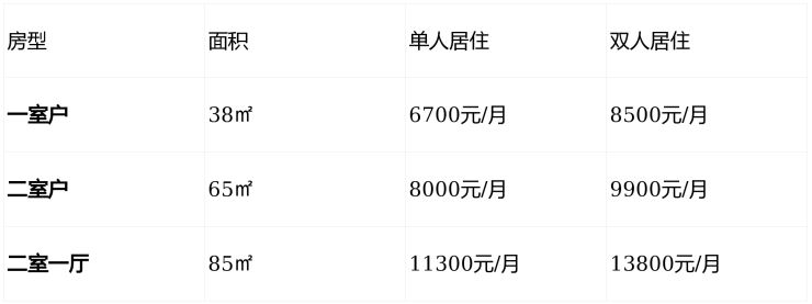 注:以上为基础月费,会根据楼层、景观差异浮动5%-10%,具体以社区最新报价为准。咨询详情请拨打400-855-0270。