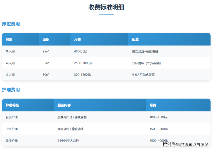 轻度护理(3600-4200元/月):面向生活基本自理长者,提供晨晚间基础护理、健康监测等服务