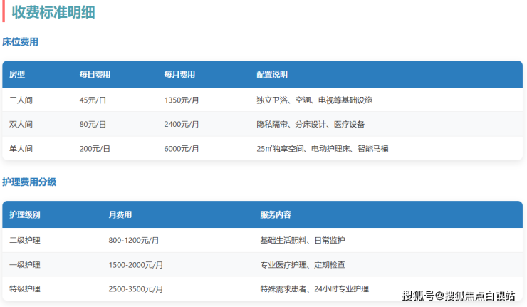 特级护理:2500-3500元/月(针对特殊需求患者)