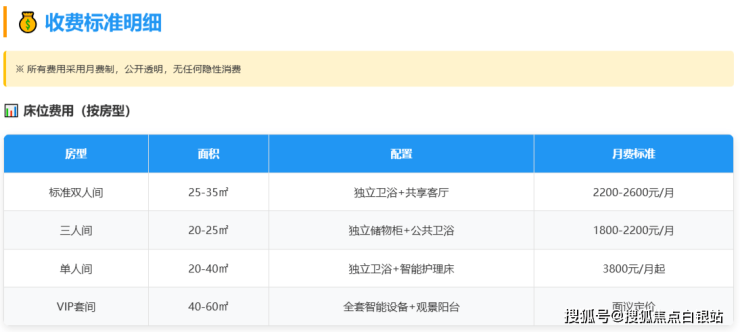 逸仙养老院采用**"月费制"收费模式**,所有费用公开透明,无任何隐性消费和额外赞助费,确保家属消费安心。