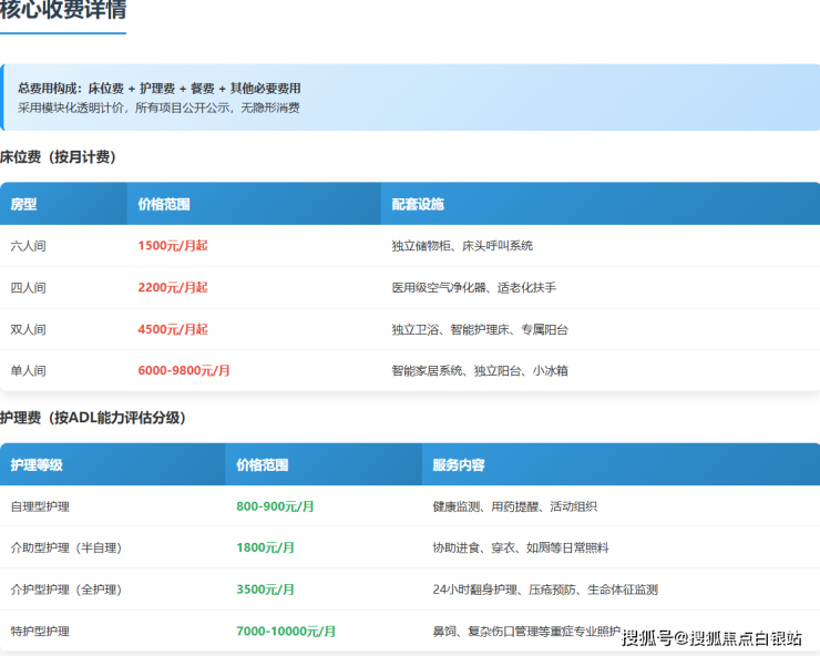 介助型(1800元/月):增加进食辅助、穿衣协助、如厕陪同、洗浴看护