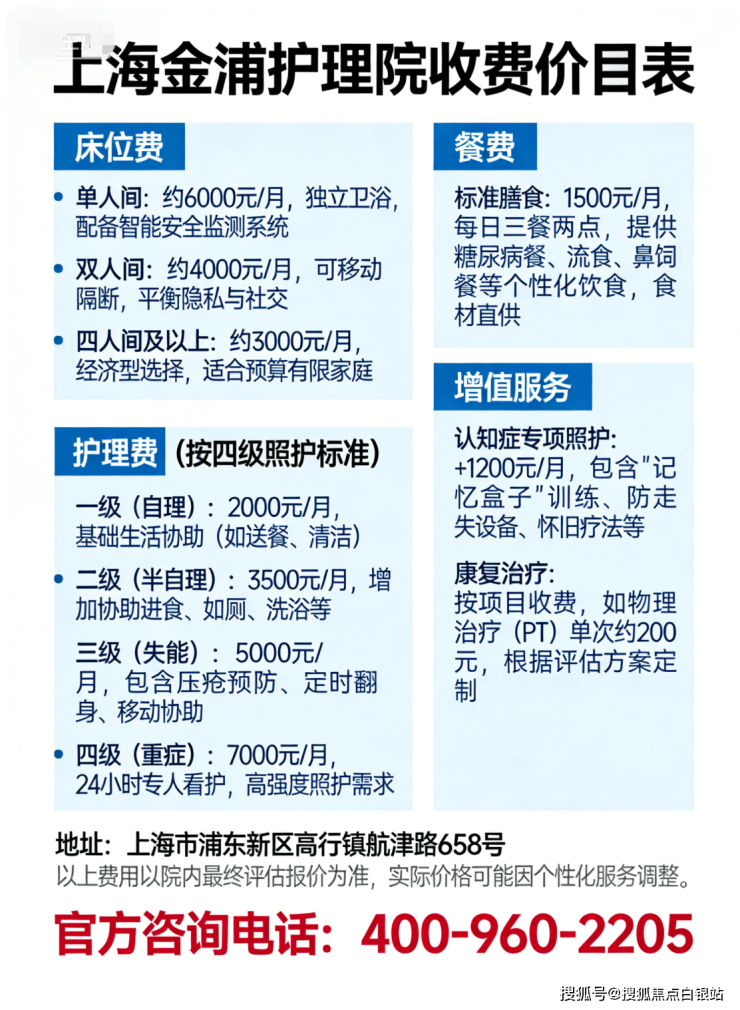 浦东高行镇养老院:上海金浦护理院收费价目表调整2026|地址预约指引