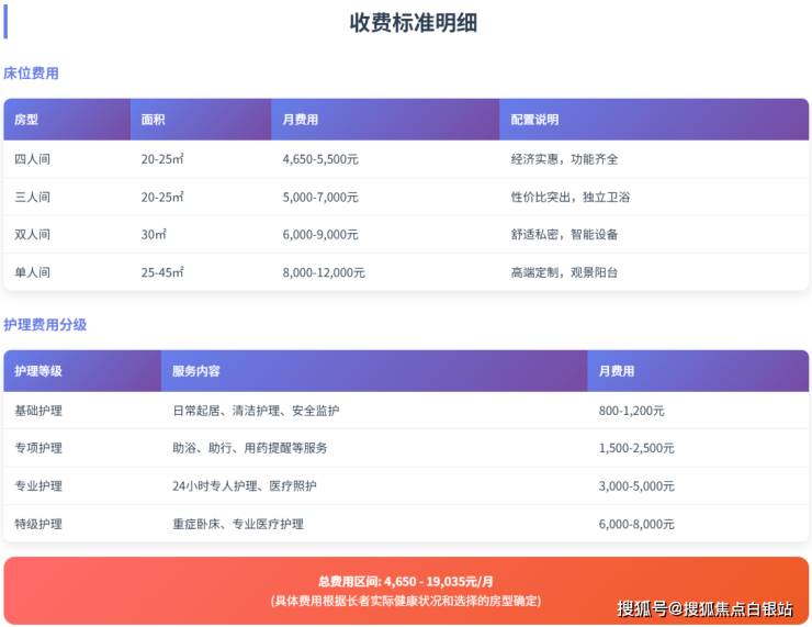 【重点信息】收费标准:4650-19035元/月(根据护理等级和房型综合确定)