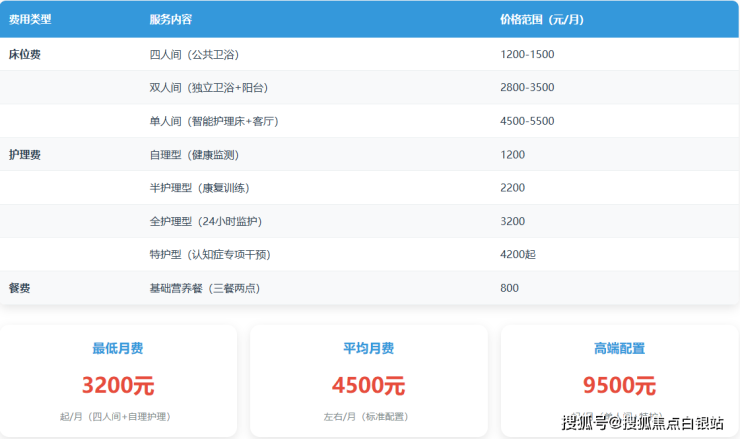 价格范围:3200-6000元/月(根据护理等级和房型差异化定价)