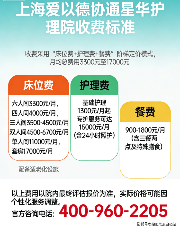 温馨提示:最准确的费用需结合老人实际身体状况和房型评估。建议拨打官方电话 400-960-2205 获取个性化费用明细解读。