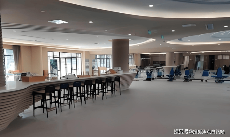 1.8米宽走廊连接医疗区、康复区与生活区,地面铺设防滑地胶,墙角圆角处理,墙面安装双层扶手。公共区域设置心率监测休闲椅与环形步道,步道旁种植四季花卉。