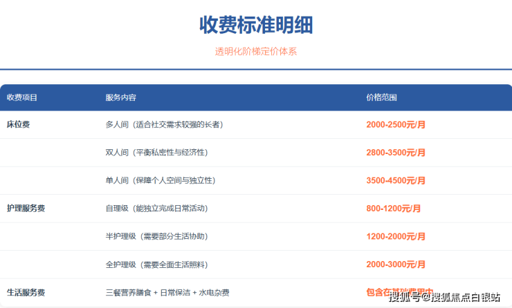 上海虹南长者照护之家实行透明合理的阶梯式收费体系,具体收费标准如下: