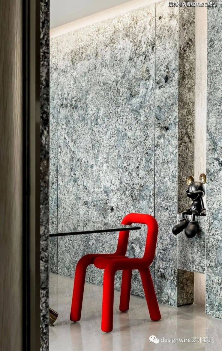 石材与绿野仙踪一样是精心挑选,纹路饱满,与深色与灰色间迸发出一抹紫色,宛若一朵朵盛开的紫罗兰,把人与对自然的幻想融为一体,家就是一个个小世界。