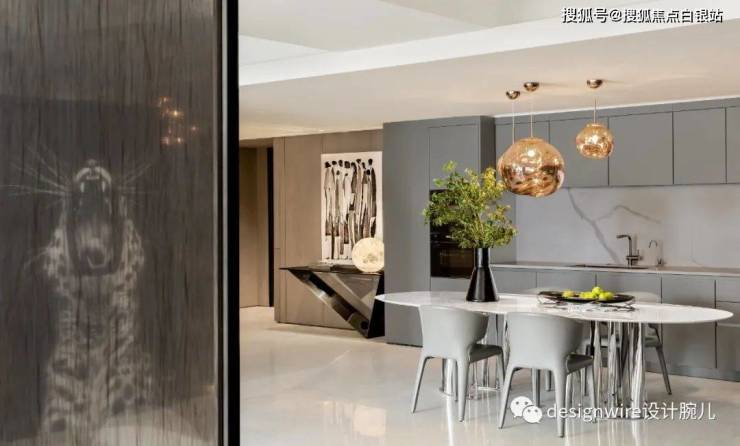 餐厅与厨房依然是一体化设计,为室内互动创造了更多可能,这是设计赋予空间的节奏艺术。在引领生活范式的CBD启迪更好的生活,成了城市赋予他们的价值与力量体现。