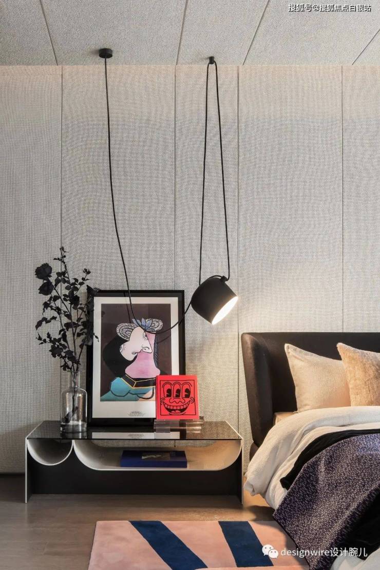 床、单椅搭配两款不同造型的床头柜,则旨在打破空间平衡与秩序。呼应空间所要传达的理念:力图打破固有约束与标签的空间精神。