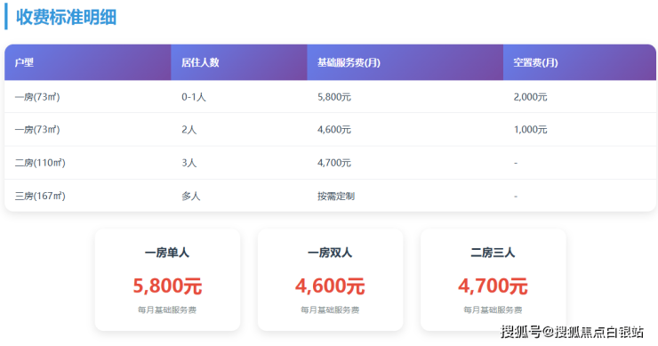 基础服务包(800元/月):含24小时安保、房屋维护、基础家政及紧急呼叫响应。