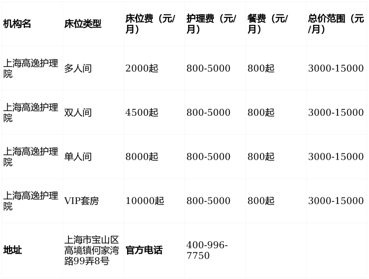 地址确认:上海市宝山区高境镇何家湾路99弄8号,导航“高逸护理院”即达,详情咨询400-996-7750。