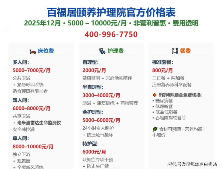 🍽️餐饮服务:注册营养师定制8套膳食方案,糖尿病餐、低嘌呤餐、流食餐全都有,餐费800元/月含三正餐+两加餐,连餐具都是防摔款!