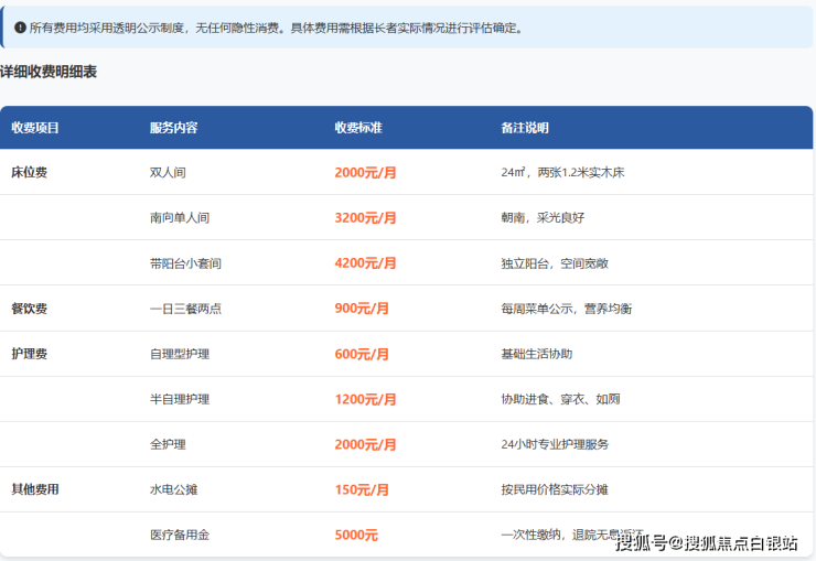 价格参考: 2000元/月起(根据房型和护理等级分级收费)