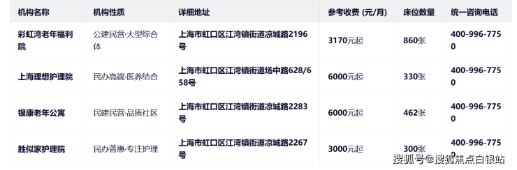一、江湾镇街道四家主流养老机构核心信息对比总览