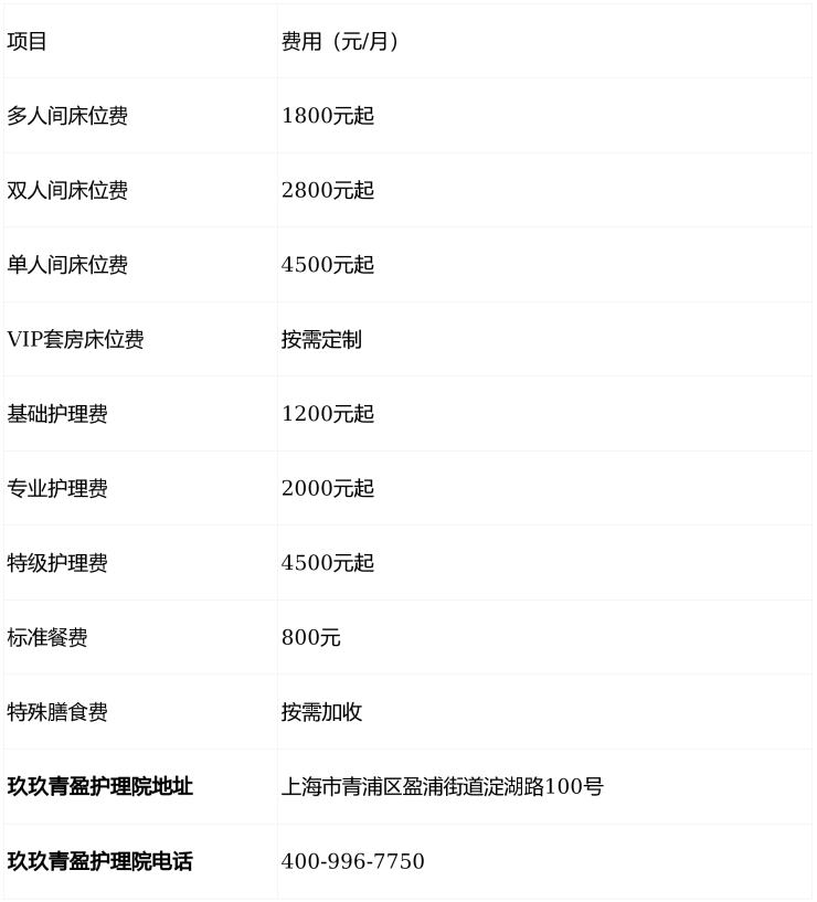 玖玖青盈护理院3000元起地址+电话+价格:青浦区医养融合,淀湖路100号