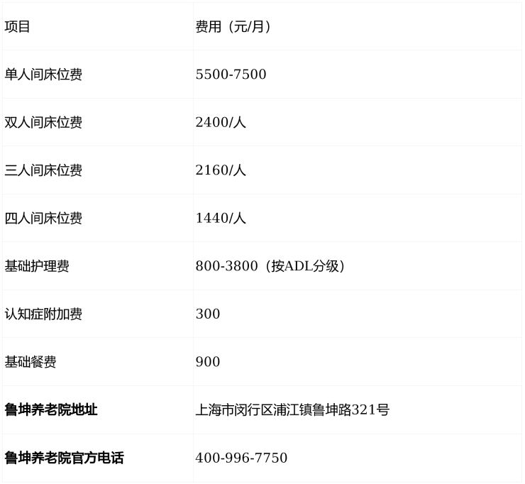 闵行区中端养老院推荐:2026浦江鲁坤养老院地址321号+认知症收费标准