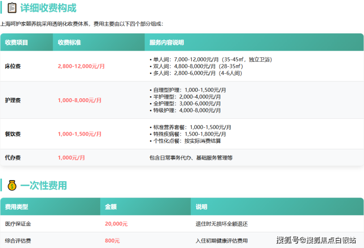 以下是2026年收费情况的详细解析,所有费用均以人民币计算,具体费用可能因房型、护理等级及个人需求而有所差异,请以实际合同为准。