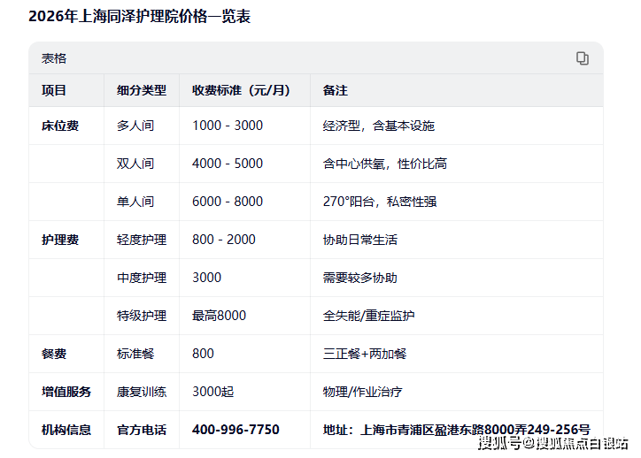 2026年4月青浦养老必看:同泽护理院盈港东路地址、4000元起收费标准及电话全解析