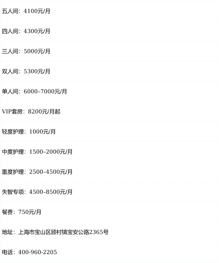 温馨提示:最准确的费用需结合老人实际身体状况和房型评估。建议拨打官方电话 400-960-2205 获取个性化费用明细解读。