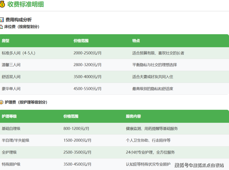 经济型方案(约3500-4000元/月):双人间 + 标准营养餐 + 自理级护理。
