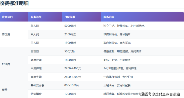 上海塘桥养护院采用模块化收费体系,主要包含床位费、护理费和餐费三大部分,无隐藏消费,具体明细如下: