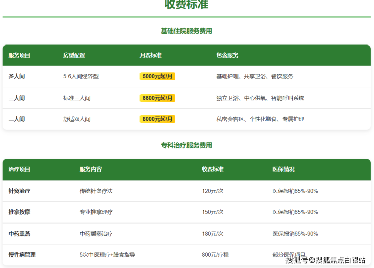医院实行“基础服务+专科治疗”双轨收费,月均费用6600元起,具体构成如下: