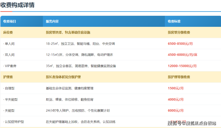 兰公馆兰钰护理院2026年核心服务与费用对应表