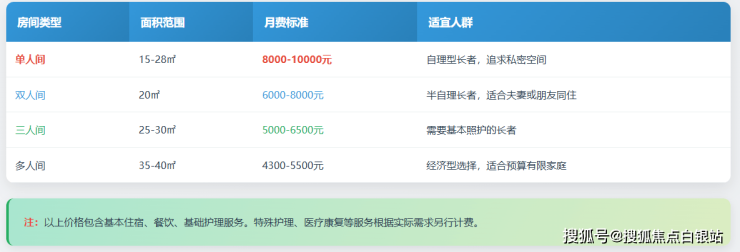 基础套餐:4000元/月起(六人间+基础护理服务)