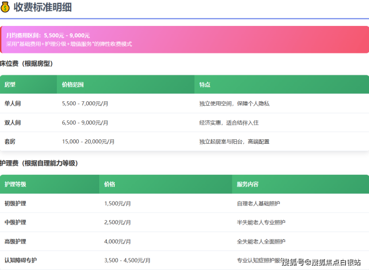 参考价格区间:5500-9000元/月(根据房型和护理等级动态调整)