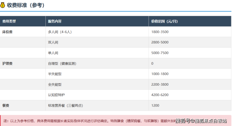 其他费用:入住时需缴纳一定额度的医疗备用金(退住时无息返还)。水电费通常包含在内,洗衣、理发等基础生活服务免费。