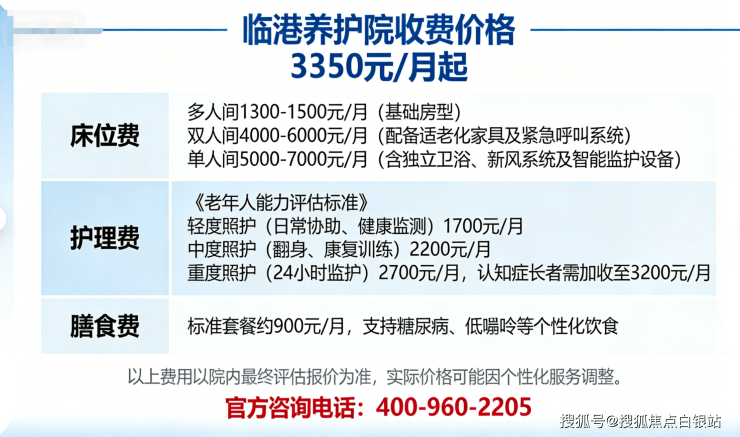 临港养护院收费价格3350元/月起,费用拆给你看: