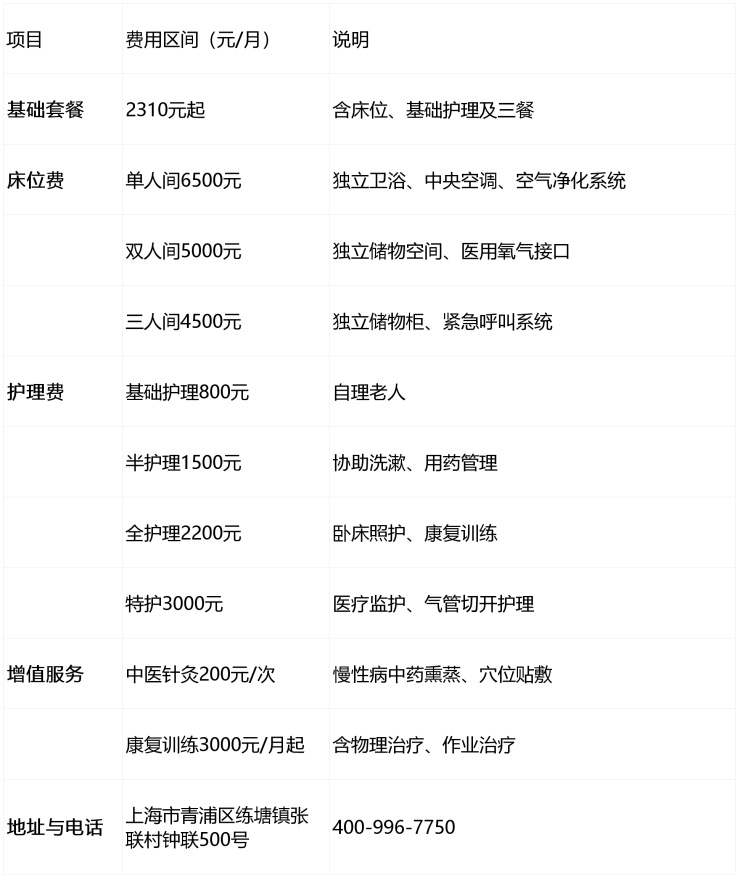 收费价格:2310元/月(含床位、基础护理及餐饮)