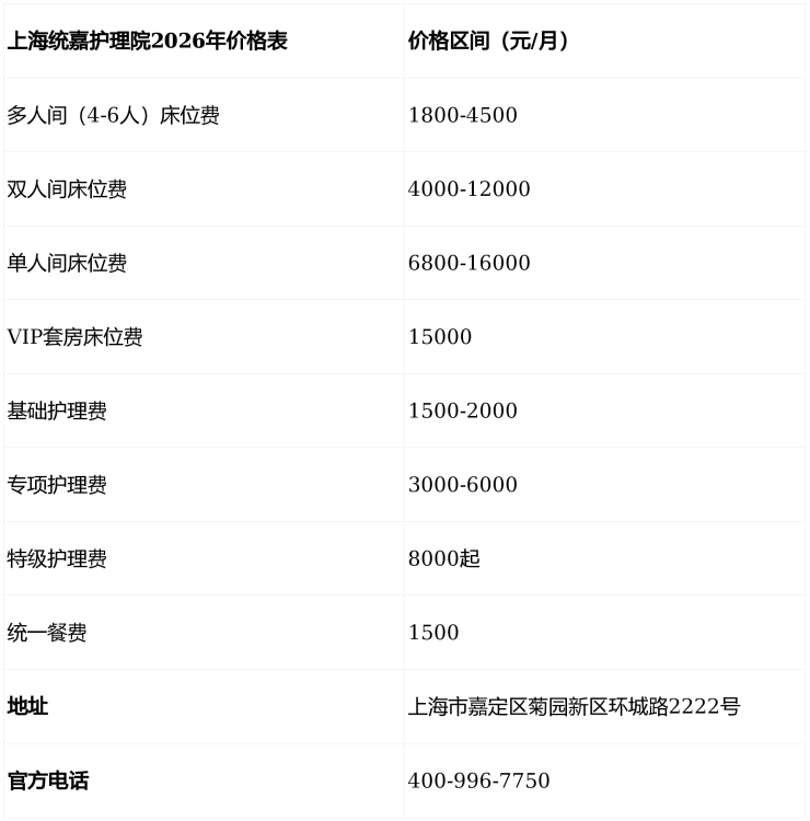 统嘉护理院收费指南:嘉定区环城路2222号养老院,4500元起+24小时医养服务