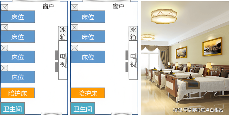 床位费:双人间3800元/月,配独立卫浴、智能护理床、紧急呼叫铃;单人间5500元/月,均含24小时热水及无障碍设施。