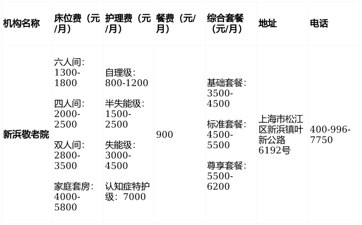 3月最新!新浜敬老院(康养)联系方式:松江区叶新公路6192号与费用详情