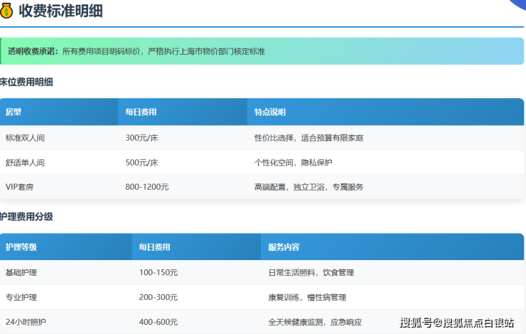 医院严格执行上海市物价部门核定标准,所有费用项目均在一楼大厅电子屏公示,实现"项目名称、收费标准、医保报销比例"三公开: