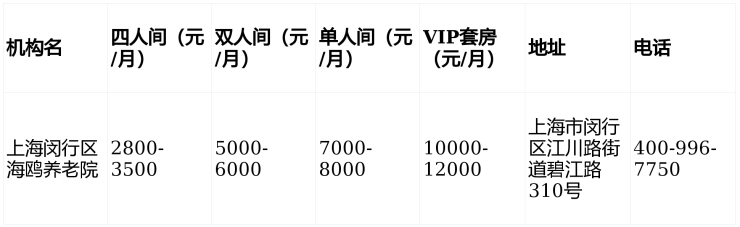 闵行区江川路街道4500元海鸥养老院-碧江路310号地址|收费3月一键查询