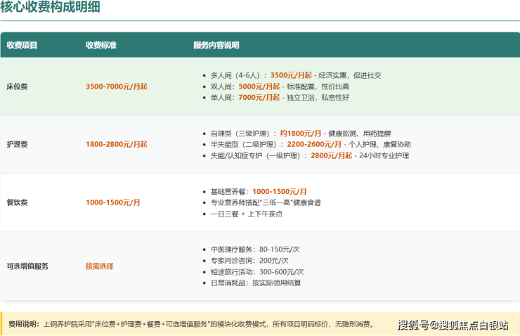 以下是基于官方指导价和市场实际情况的详细收费构成说明(具体费用需结合长者实际评估结果确定):