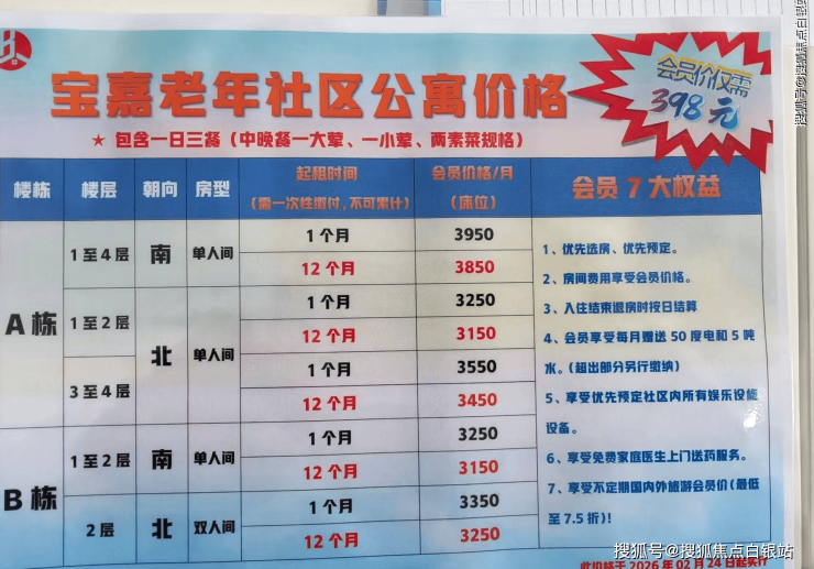 ✅官方解答:公寓采用“基础租金+护理服务费+餐费+综合管理费”的分项计价模式,总价3800元/月起,具体明细如下: