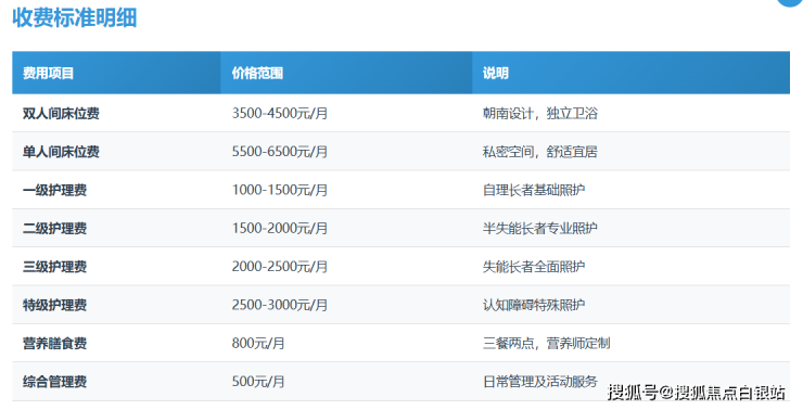 上海和禾和养老院采用科学的收费体系,具体明细如下: