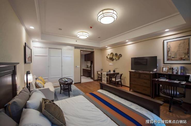 由日本日建设计团队与美国Dannis合作设计,采用Art Deco建筑风格与现代适老化理念完美融合。全楼配备地暖、中央空调、新风系统,走廊宽度1.8米并设双侧扶手,所有家具采用圆角设计,实现真正的“适老化”与“隐老化”。