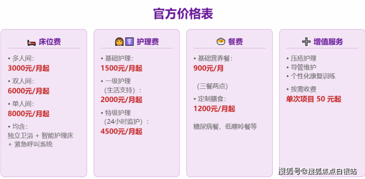 ▶收费价格:3000元/月起(含床位、基础护理、餐费)