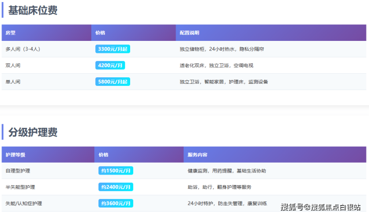 参考价格范围:3300-7100元/月(根据房型和护理等级分级收费)