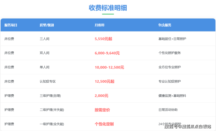 三级护理(针对基本自理长者):约2000元/月。主要提供生活提醒、健康数据监测及基础生活协助。
