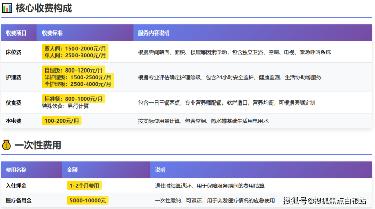 根据老人的自理能力等级确定,主要分为: